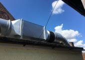 New Cafe Hampton CourtExtraction ducting,carbon filters,2 pole extraction fan and controller,mesh end terminal. |